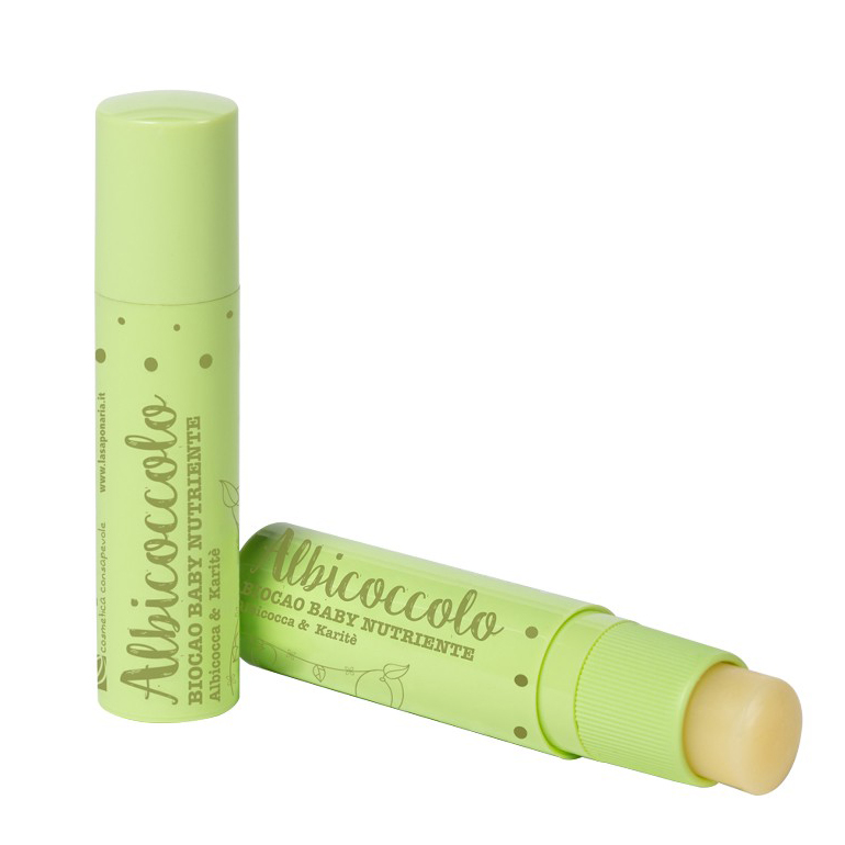 Albicoccolo – biocao baby nutriente biologico de La Saponaria è un burro cacao super nutriente e protettivo per le tue labbra, una vera coccola naturale.