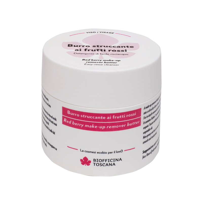 Contiene Rubiox® un esclusivo principio brevettato ad azione antiossidante, protettiva e lenitiva, derivato da una particolare miscela di frutti rossi delle colline toscane: more di gelso, uva spina, ribes e mirtillo. La formula è completata da pregiati oli bio di rosa mosqueta, jojoba, vinaccioli, mandorle e cera d’api che operano in combinazione per rimuovere il trucco in modo immediato, donando morbidezza e idratazione alla pelle.