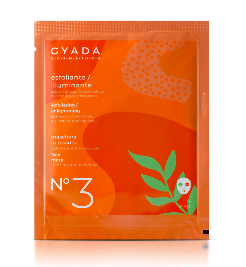 Ritorna al negozioMaschera viso esfoliante e illuminante biologica n. 3 di Gyada Cosmetics ideale per tutti i tipi di pelle, regala un aspetto luminoso al viso. Contiene Succo d’aloe, acqua attiva di melograno, estratto di pomodoro e bacche di goji dall’azione antiossidante e Acido Lattobionico che aiuta a regolarizzare il processo di cheratinizzazione promuovendo il rinnovo cellulare, migliorando l’aspetto della pelle e la sua luminosità.